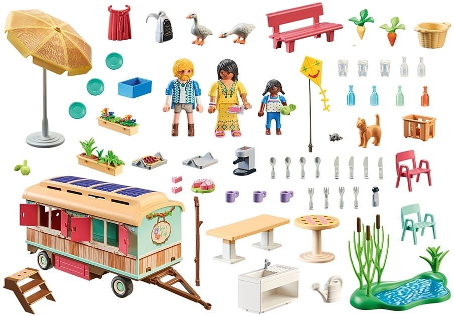 Pristatome PLAYMOBIL „Cosy Train Café with Vegetable Garden“, kur fantazija neturi ribų! Sukurtas vaikams nuo 4 metų, šis nepaprastas žaislų rinkinys sujungia jaukaus kavinės žavesį ir kelionės priekabo…