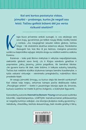 Kanadiečių autorės Hannah'os Bonam-Young romanuose susitinka kitoniški, nepritampantys, LGBTQIA+ bendruomenei priklausantys ar negalią turintys veikėjai. Jos istorijos įkvėptos realių gyvenimų – netobulų, chaotiškų, kartais skausmingų, bet visada gražių ir tikrų.