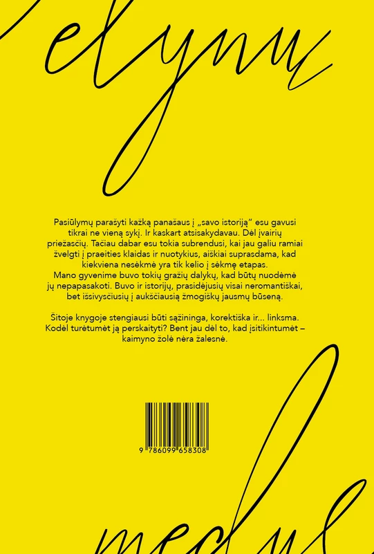 Pasiūlymų parašyti kažką panašaus į „savo istoriją“ esu gavusi tikrai ne vieną sykį. Ir kaskart atsisakydavau. Dėl įvairių priežasčių. Tačiau dabar esu tokia subrendusi, kai jau galiu ramiai žvelgti į praeities klaidas ir nuotykius, aiškiai suprasdama, kad kiekviena nesėkmė yra tik kelio į sėkmę etapas. Mano gyvenime buvo tokių gražių dalykų, kad būtų nuodėmė jų nepapasakoti. Ir istorijų, prasidėjusių visai neromantiškai, bet išsivysčiusių į aukščiausią žmogiškų jausmų būseną.
