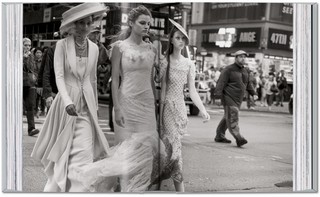 Seventy years of Dior history projected against the effervescence of Times Square, New York: this was the concept behind Lindbergh’s project, extraordinary both in scope and dimension, for which Dior, in an unusual move, allowed an unprecedented number of priceless garments to be taken from its vaults in Paris and shipped across the Atlantic.