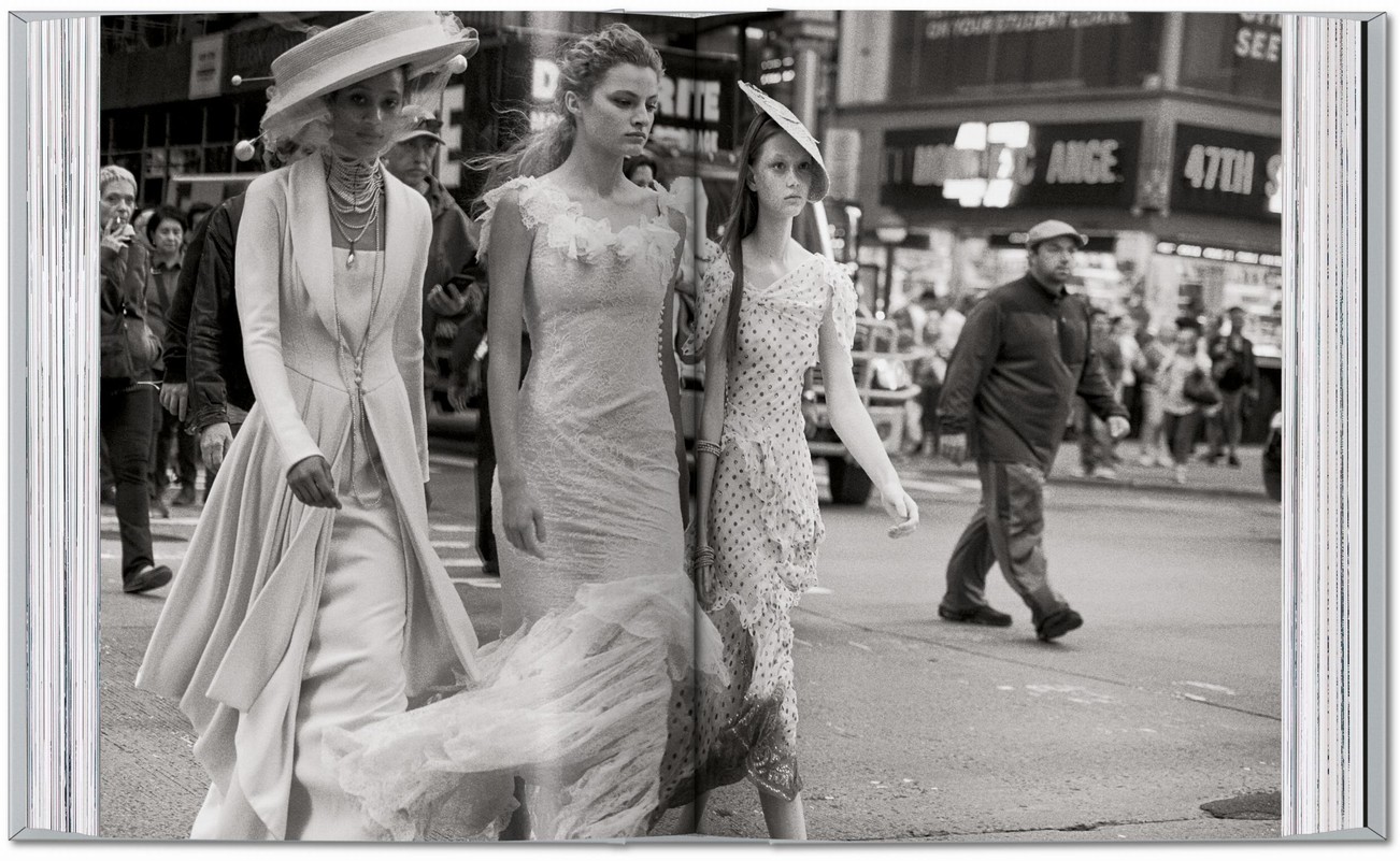 The result is electric. Amid the frenzy of Times Square, Alek Wek glows in the immaculate 1947 Bar suit, the storied ensemble that launched the House of Dior. In snatches of street scenes, models Saskia de Brauw, Karen Elson, and Amber Valletta flit through crowds and scaffolding, are reflected in building façades, and draped in haute couture, from pieces hand-sewn by Christian Dior to more recent designs by Maria Grazia Chiuri. Lindbergh’s trademark monochrome and color photographs masterfully highlight the intricacies, silhouettes, and textures of each garment.