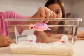 Pripildyk indą vandens ir stebėk, kaip vėžliukų mama atgyja ir plaukia! Kiek mažylių vėžliukų ji išperės šįkart? 2, 3, o gal net 4?