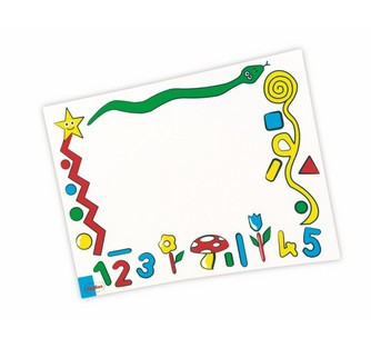 Žaismingais ornamentais puoštas didelis ilgaamžis lankstaus plastiko paklotas naudingas vaikams dirbant su moliu, plastilinu, modelinu.