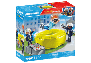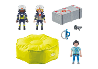 PLAYMOBIL rinkinys su ugniagesiais ir oro pagalve gelbėjimą paverčia tikru nuotykiu! Du drąsūs ugniagesiai į įvykio vietą atvežė pripučiamą gelbėjimo pagalvę, kad saugiai išgelbėtų gyventoją iš liepsnose skendinčio namo. Pagalvė lengvai pripučiama ir išleidžiama, o praktiškas kištukas patikimai sulaiko orą. Po misijos galima išleisti orą, o pagalvę kompaktiškai laikyti dviejų dalių dėžutėje. Ugniagesių šalmai yra nuimami, todėl žaidimai tampa dar tikroviškesni. Tai smagus rinkinys jaudinantiems nuotykiams, ugdantis kūrybiškumą, socialinius įgūdžius bei saugumo supratimą. Tai puiki dovana 4 metų ir vyresniems berniukams ir mergaitėms!