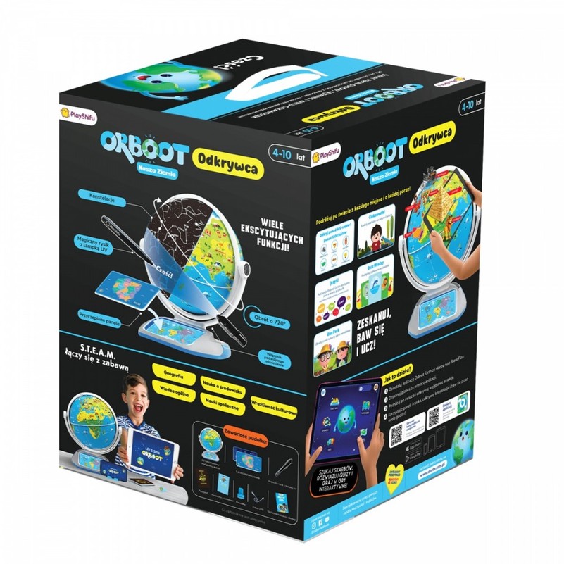 Playshifu Orboot Explorer – pasaulio rutulys Paverskite geografijos mokymąsi į jaudinantį nuotykį! Orboot Explorer – revoliucinis interaktyvus pasaulio rutulys, jungiantis fizinį ir skaitmeninį pasaulius, įkvepiantis 4–10 metų vaikus su entuziazmu tyrinėti pasaulį. Orboot Explorer leidžia sukti Žemę 720 laipsnių, rodyti žvaigždžių žemėlapį su dviem ryškumo lygiais ir žaisti viktorinas naudojant komplekte esantį UV rašiklį (UV šviesa įmontuota dangtelyje). Tiesiog atsisiųskite nemokamą Orboot Ea…