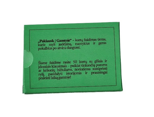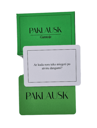 „Paklausk | Gamtoje“ – kortų žaidimas tiems, kurie myli judėjimą, nuotykius ir gerus pokalbius po atviru dangumi.