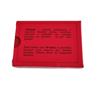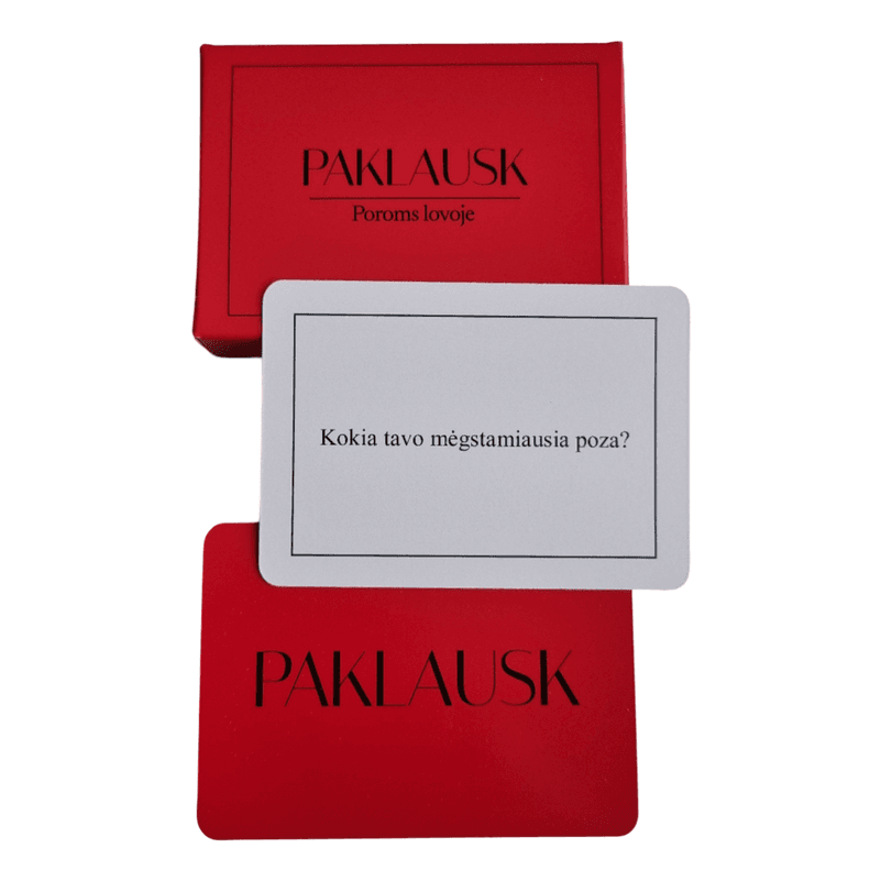Paklausk | Poroms lovoje“  – tai originalių, intriguojančių ir nepadorių klausimų žaidimas poroms, norinčioms praturtinti ir patobulinti savo intymų gyvenimą. Šis žaidimas kviečia kalbėtis apie tai, kas svarbu, bet dažnai nutylima. Atvirumas, flirtas ir netikėti prisipažinimai garantuoti!