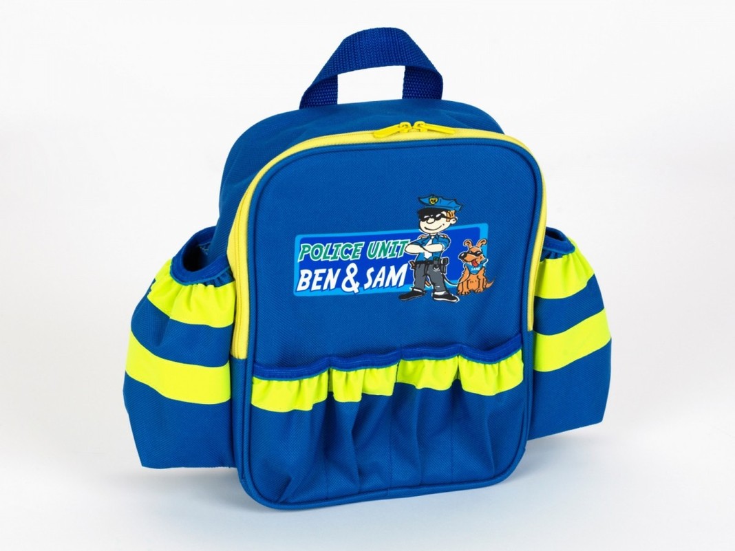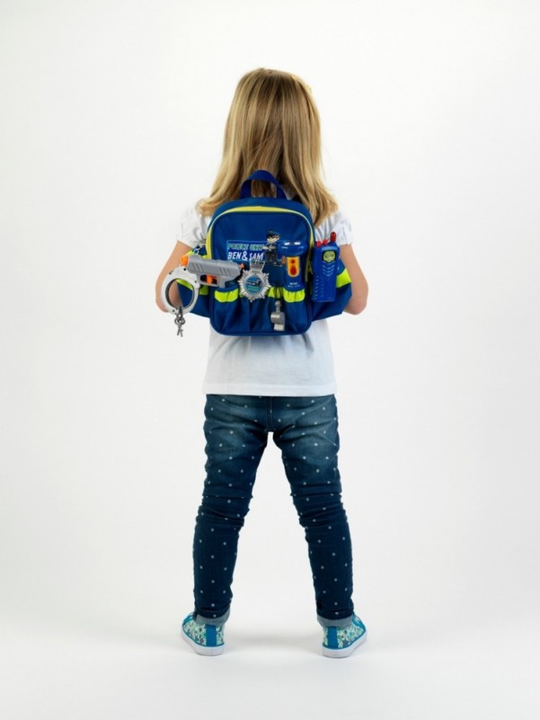 Aukštos kokybės rinkinys, sudarytas iš kuprinės su atšvaitinėmis juostelėmis, šviestuvo, trumpųjų bangų radijo, pūtimo, policijos ženklelio ir vandens pistoletu. Kuprinė viduje išklota policijos motyvais. Šviestuvas šviečia, antrankiai gali būti uždaromi kaip tikri. Didelis kišenių skaičius leidžia greitai ir patogiai supakuoti viską.