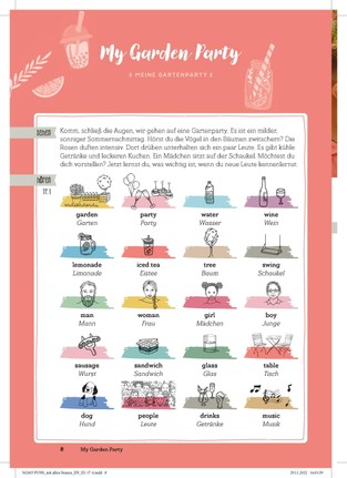 In den Übungen und Texten benutzt du alle deine Sinne abwechselnd und gleichzeitig. Du siehst und hörst Texte und Bilder, schmeckst selbstgekochte landestypische Köstlichkeiten und setzt den ganzen Körper zum Lernen durch Bewegung und Begreifen ein.