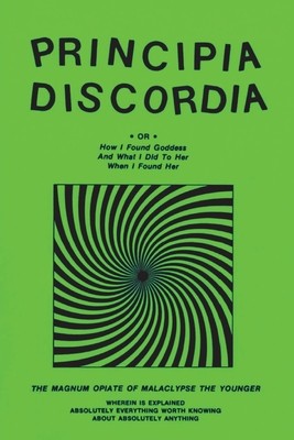 One of the great books of our time, Principia Discordia is the official bible of the most relevant religion ever conceived, Discordianism. This legendary underground classic contains absolutely everything worth knowing about absolutely anything, including The Law of Fives, The Gospel According to Fred, The Five Apostles of Eris and The Book of Uterus. Discordianism is the religion for these screwed-up times, and Principia Discordia reveals it here for your enlightenment, confusion and entertainment.