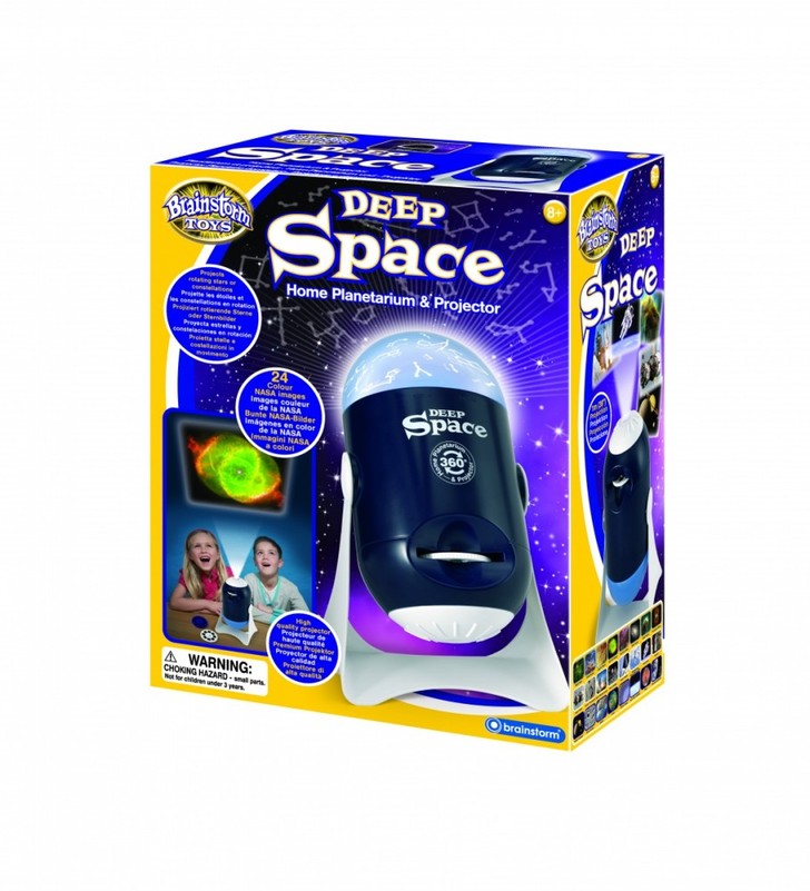 Transformuokite savo tamsią patalpą į kosminį šviesų šou ir tyrinėkite visatą su „Deep Space“ namų planetariumu ir projektoriumi. Šis planetariumas su projektoriumi turi savo stovą, o pagrindinė prietaiso dalis sukasi, todėl galite naudoti arba projektorių, arba planetariumą. Planetariumas turi dvi kupoles: viena rodo žvaigždžių raštus, o kita – žvaigždynus ant lubų ir sienų. Įdėkite juodą žvaigždžių arba žvaigždynų kupolę į laikiklius erdvės prietaiso viršuje, švelniai pasukite, kad užfiksuotumėte kupolę, įjunkite kupolės projektoriaus nustatymą ir stebėkite, kaip vaizdai sukasi aplink kambarį. Atsukite kupoles, kad jas išlaisvintumėte. Pridėkite kupolę su naktiniu šviesos šaltiniu, ir giluminė erdvė taps šaunia naktine šviesa su sukiojančiomis žvaigždėmis ir žvaigždynais.