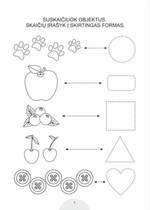 Atlikdamas užduotis vaikas lavins rašymo, skaičiavimo, formų pažinimo įgūdžius, ugdys loginį mąstymą, pastabumą ir kūrybiškumą.