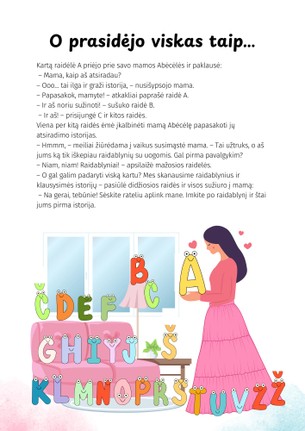 Tai knyga – metodinė priemonė, kuri lengvai ir efektyviai per pasakas sukuria asociacijas ir padeda vaikams lengvai ir žaismingai įsiminti raides, jų formas ir vardus bei sukuria mažųjų emocinį ryšį su abėcėlė.