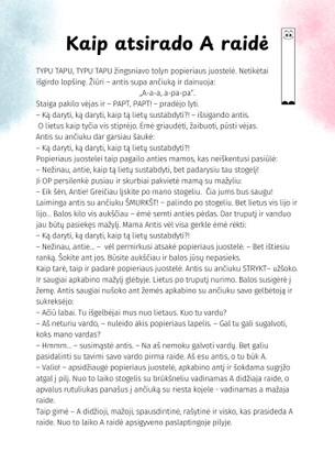 „Raidulio pasakos“ – tai 32 pasakos, kurios nuo pat pirmo puslapio nukelia vaikus į stebuklingą Raidolendo pilį. Čia raidės tampa veikėjais ir padeda mažiesiems suprasti, kodėl raidės yra būtent tokios formos ir turi būtent tokius vardus. Tai padeda: