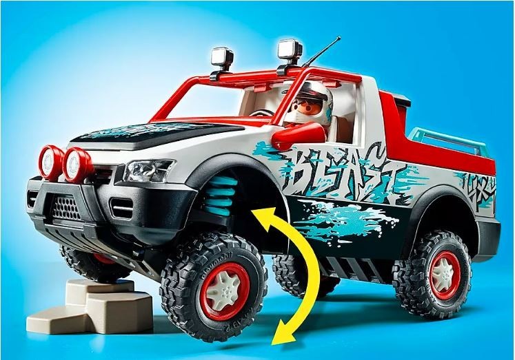 RC pajėgus ralistų automobilis su išplėčiama rampe. Pasinerkite į trasą su stilingu PLAYMOBIL ralistų automobiliu! Užsidėkite šalmą ir pradėkite kitą lenktynių etapą su PLAYMOBIL ralistų vairuotoju. Dėl judančio priekinio ašies automobilis lengvai prisitaiko prie bet kokio reljefo. Atidarius variklio dangtį, atsiveria variklio bloko vaizdas. Išimkite saugos barą, kad įdėtumėte figūrėles. Šis pikapas yra RC pajėgus ir gali būti derinamas tiek su 2,4 GHz RC modulio rinkiniu (6914), tiek su „Bluetooth“ RC modulio rinkiniu (71397 - parduodamas atskirai). Puikūs žaislai, skirti įspūdingo vaidybinių žaidimų smagumui vaikų kambaryje.