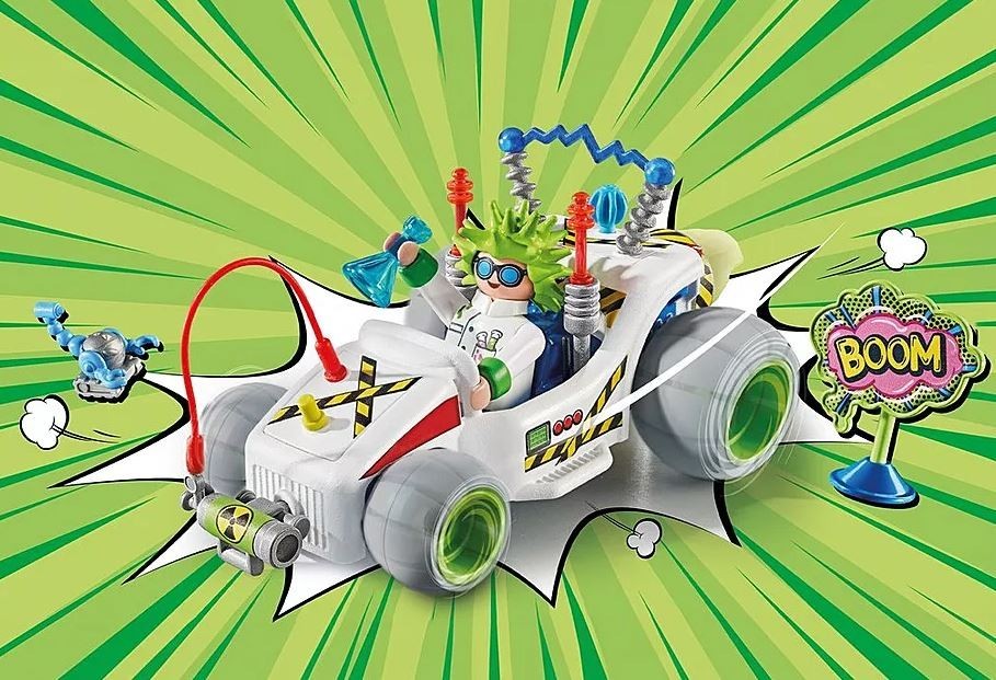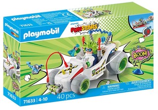 Pasiruoškite, pasiruoškite... Beprotiškas profesorius be jokių dvejonių leidžiasi į kelionę su savo traukiamuoju go-kartu. Pūpsančios bandymo vamzdeliai, elektriniai prietaisai ir reaktyvinis variklis paverčia jo go-kartą į mokslinę sensaciją, kuri užgožia viską aplink. Didelio greičio lenktynės, manevravimas aplink kliūtis arba beprotiški triukai – PLAYMOBIL Funstars yra pasiruošę!
