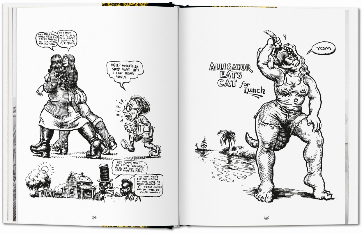 Combining volumes 5 and 6 from the second R. Crumb Sketchbook boxed set, and produced directly from the original artworks now belonging to an ardent French collector, this is one big 444-page Crumb feast for way less than his rare originals. Among the hundreds of subjects included are Crumb’s move to rural California, his marriage to Aline Kominsky, the birth of daughter Sophie, as well as further adventures of Mr. Natural, mischievous Snoids, Arcade comics strips, political discontent, existential angst, huge powerful women, geeky little guys, Mao Tse Tung, Mick Jagger and moral outrage, all wrapped up in a quality hard cover featuring front and back illustrations newly hand-colored by Crumb himself.