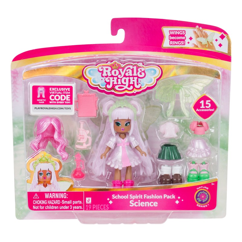 Sveikas atvykęs į magišką „Royale High“ pasaulį! Į realybę persikėlę herojai kviečia iš arčiau susipažinti su vaizdo žaidimu ir leistis į virtualų pasaulį, kupiną stiliaus ir mados. Rinkinyje „Mokyklos dvasia“ yra stilinga 7,5 cm lėlytė su fėjos sparnais ir 15 žaidimo įkvėptų aksesuarų! Šios serijos lėlyčių drabužius galima keisti ir derinti tarpusavyje, todėl kiekviena lėlytė gali keisti savo stilių nors ir kiekvieną dieną! Be to, kiekviename rinkinyje taip pat yra slaptas žaidimo kodas, su kuriuo susikursi patį šauniausią žaidimo avatarą.