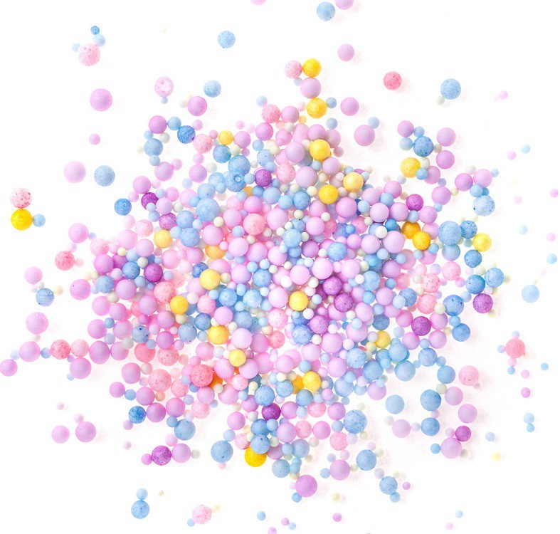 Pakuotėje yra įvairių dydžių spalvingi putplasčio rutuliukai: nuo 2 iki 6 mm.