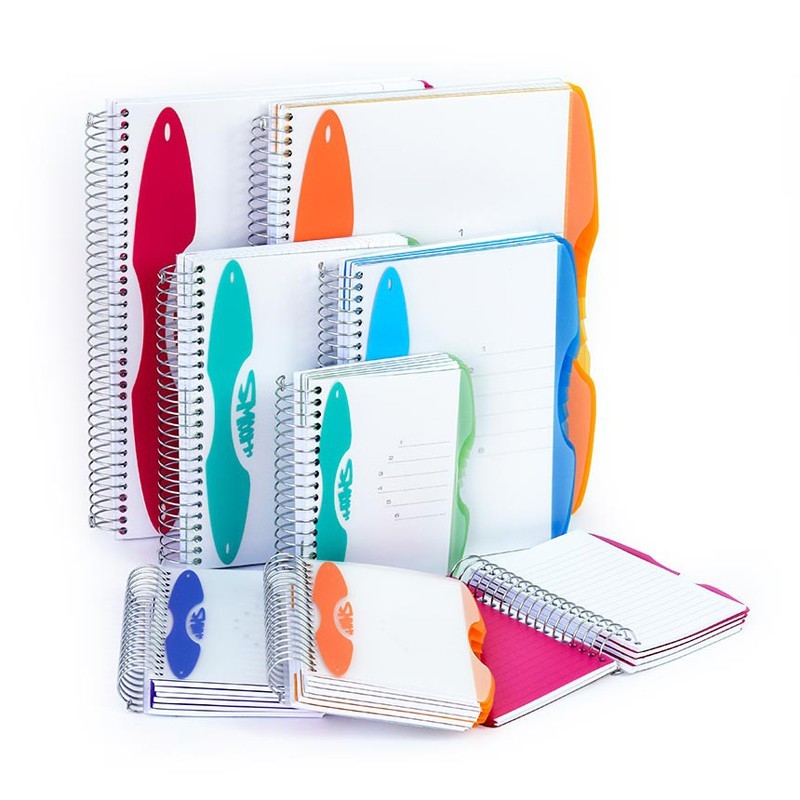 A4 formato sąsiuvinis SMOOTH 150 lapų langeliais su spirale. Viršelis: • viršelis pagamintas iš perdirbto polipropileno• su suapvalintais kampais• violetinės spalvos Popierius:• svoris 80g• baltumas 170 (CIE)• lapai su perforacija ir skylėmis ,kurių pagalba galima įsegti ir išsegti lapus• lapai su paraštėmis Skiriamieji lapai:• plastikiniai 5 vnt • galima įsegti bet kur Kaina už 1 vnt.
