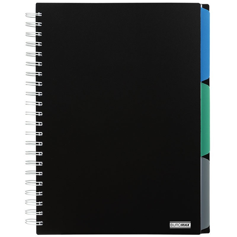 Lapų skaičius: 120  Formatas: A4 Vidinių lapų storis: 70 g/m² Vidiniai lapai: Langeliai Viršelio medžiaga: kietas plastikas Įrišimo tipas: spiralinis Gamintojas: BuroMax, Ukraina.