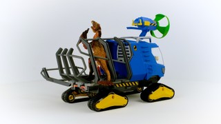 Flinas džiunglėse su savo vikšriniu automobiliu ieško dinozaurų. Kai jis pakelia vairuotojo kabiną, puikiai mato apylinkes ir gali pastebėti kiekvieną priešistorinį milžiną mylių atstumu. Šį kartą jis nori iš arčiau susipažinti su Dakotaraptoriumi. Jis apsvaigino jį savo „Tornado“ ginklu ir įkėlė į vikšrinio automobilio narvą. Tokiu būdu Flinas gali dinozaurą parsivežti namo ir ramiai apžiūrėti.