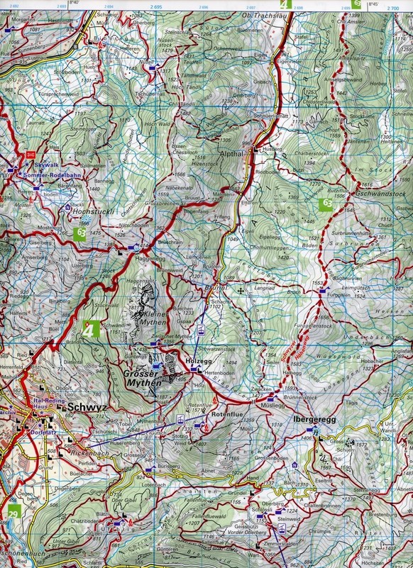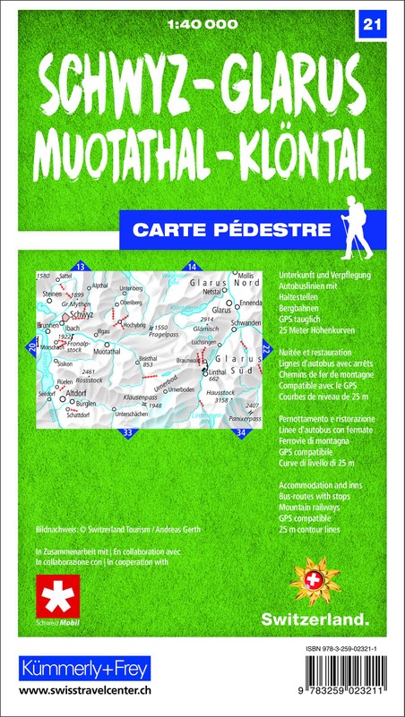In der Kümmerly+Frey Wanderkarte Schwyz, Glarus im Massstab 1:40 000 finden Sie alles, was Sie zur Orientierung und Inspiration brauchen. Dank den deutlich gekennzeichneten, leicht lesbaren und aktuellen Wanderwegen, dem aufgeräumten Kartenbild, der übersichtlichen Geländedarstellung sowie der Möglichkeit die Karte via HKF Outdoor App herunterzuladen, ist die Karte das perfekte Hilfsmittel, um das Beste aus Ihrem Besuch in dieser aussergewöhnlichen Region zu machen. Die Karte enthält detaillierte topografische Informationen wie 25m Höhenlinien sowie Höhenangaben zu Berggipfeln, Pässen und grösseren Seen und gibt dadurch eine präzise Abbildung vom Gelände. Wanderer erhalten dadurch einen besonders realistischen Eindruck der Landschaft. Die Faltkarte für Wanderer besteht aus einem robusten, weitgehend wasserresistenten und reissfesten Papier. Auch bei schwierigen Wetterbedingungen lässt sie Sie nicht im Stich. Sollte das GPS mal nicht funktionieren oder das Handy keinen Akku mehr haben, helfen Ihnen die auf der Karte deutlich verzeichneten Wanderwegen, Aussichtspunkten, Bahnhöfen, Einkehrmöglichkeiten, Campingplätzen, Parkplätzen, etc. stets die Orientierung zu behalten. Sprachen: Deutsch, Französisch, Italienisch, Englisch