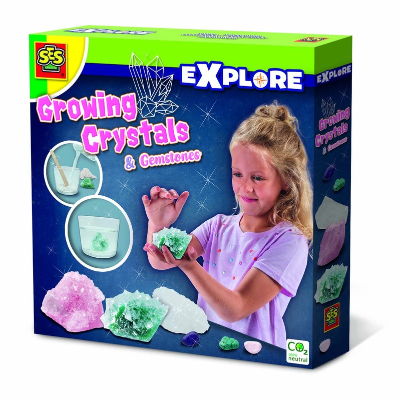 Tris spalvotus akmenukus paversk spindinčiais kristalais! Visus ingredientus sumaišyk su vandeniu, į magišką tirpalą sudėk akmenukus ir stebėk, kaip susiformuoja kristalai. Rinkinyje yra viskas, ko reikia trims didžiuliams kristalams pagaminti.