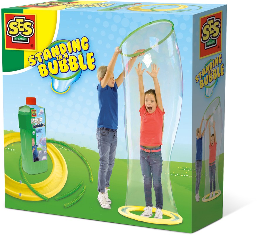 Muilo burbulai – visada smagu! O ar kada teko stovėti muilo burbulo viduje? Šis rinkinys leis išbandyti šį neįtikėtiną triuką! Muilo burbulų žiedą pamerk į skystį, o tada kelk į viršų ir stebėk, kaip po truputį atsiduri burbulo viduje!