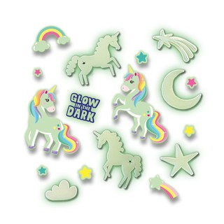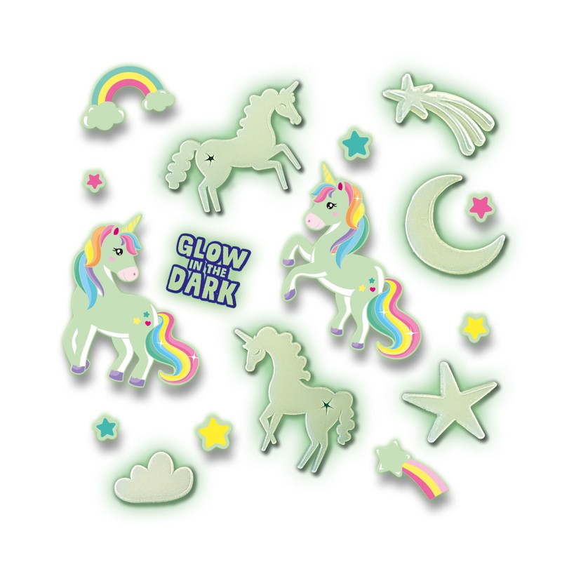 Tamsoje šviečiantys vienaragiai – puiki miegamojo dekoracija! Vienaragius, žvaigždutes, debesėlius ir mėnulius lengvai priklijuosi minkštais dvipusiais lipdukais. Suteik savo kambariui dar daugiau jaukumo ir magijos!