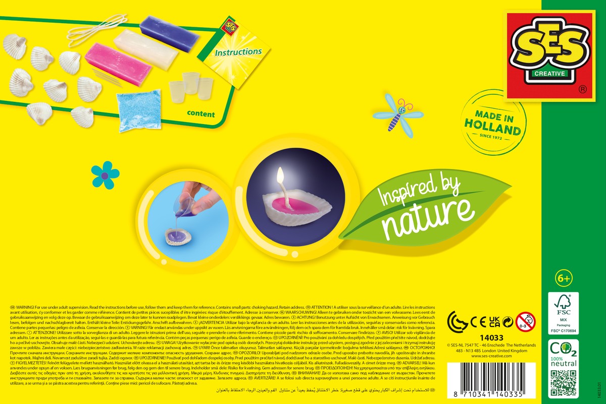 Su šiuo gamtos įkvėptu rankdarbių rinkiniu galėsi lieti žvakes tiesiog namuose! Rinkinyje esančias skirtingų formų kriaukles pripildyk ištirpinto vaško ir papuošk namus originaliomis dekoracijomis!