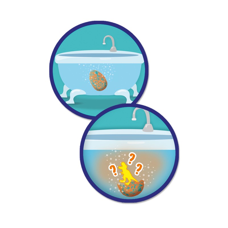 Šis vonios burbulas slepia siurprizą! Jam lėtai tirpstant vandenyje, po truputį iš jo išlįs dinozauras. Asortimente yra keturi skirtingi dinozaurai, po vieną kiekviename burbule-kiaušinyje. Vonios burbulo svoris – 160 g.
