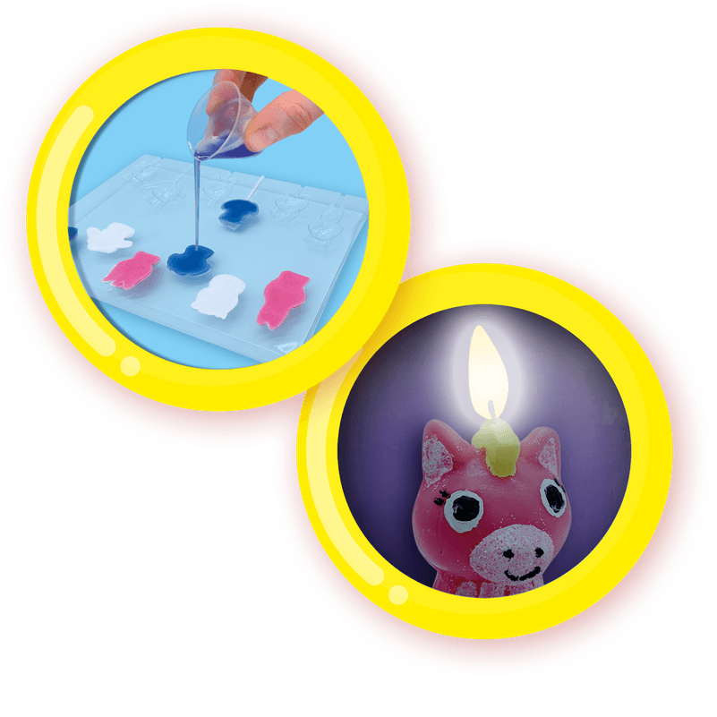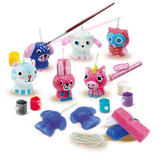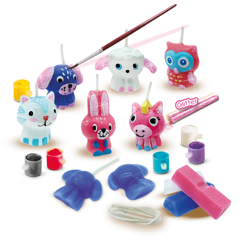 Ištirpink spalvingą vašką mikrobangų krosnelėje ir supilk į šešias linksmas gyvūnėlių formeles. Nepamiršk įdėti knato, palauk, kol viskas sustings ir nudažyk bei papuošk blizgučiais. Šios rankų darbo žvakutės bus puiki kambario puošmena ar dovana draugui!