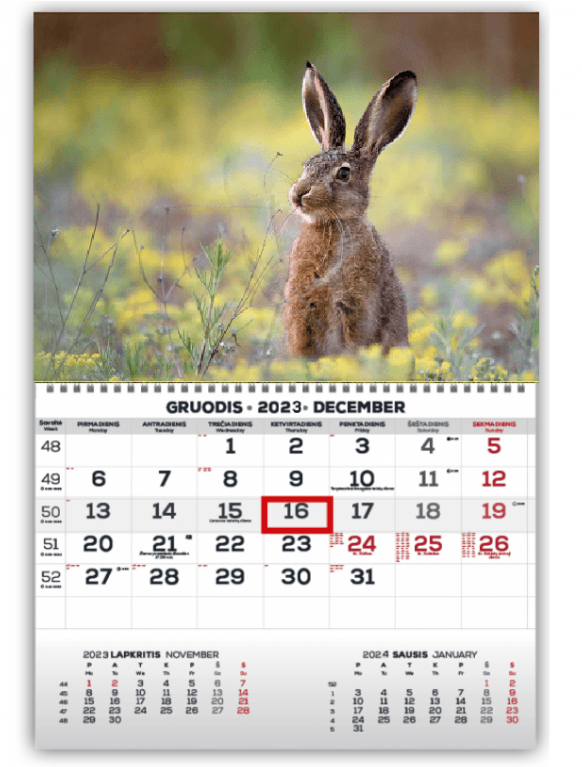 Sieninis kabinamas kalendorius vienos dalies MONO 30x42 cm