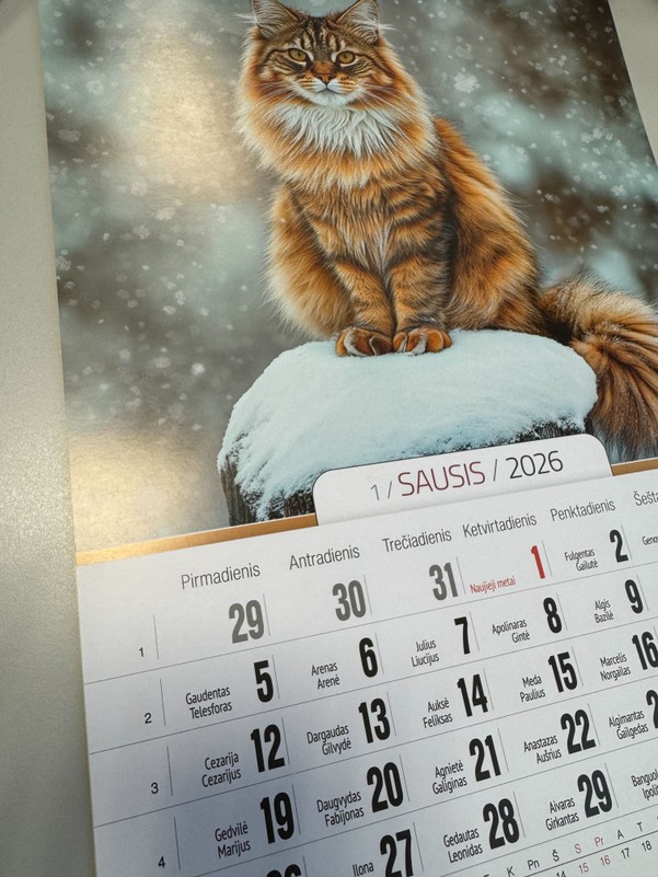 Sieninis 2026 m. kalendorius „Katės“ (A3).