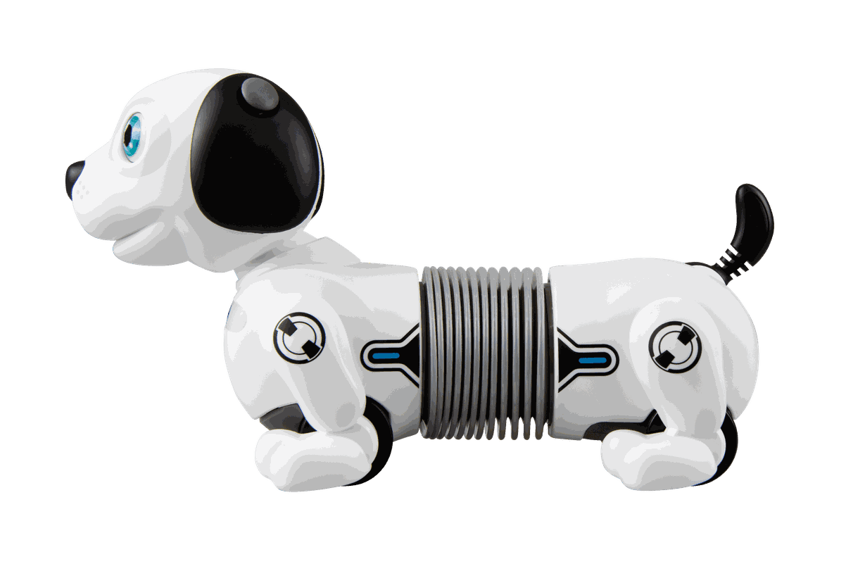 Interaktyvus šuniukas-robotukas sekioja ir gaudo savo kamuoliuką! Šuniuko kūnas gali išsitempti iki 26 cm! Šuniukas turi LED akis, garsiakalbį ir jutiklius – kai glostai jam galvą, jis elgiasi visai kaip tikras šuo, o kai pamojuoji ranka jam prieš nosį, jis sukasi į kairę arba į dešinę!