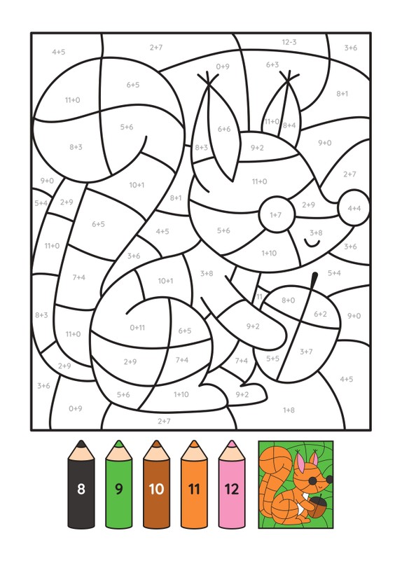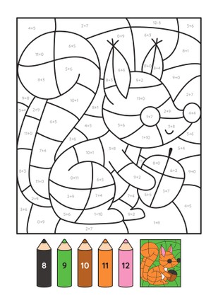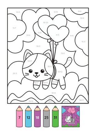 Lavinamoji spalvinimo knygelė, skirta vaikams, kurie nori mokytis žaisdami. Kiekviename puslapyje jie atliks paprastas matematines užduotis (sudėtį ir atimtį) ir pagal gautus rezultatus spalvins piešinius.