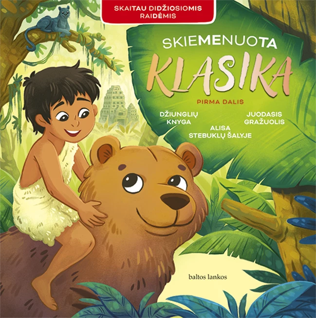 Viršelis su pažeidimu. Knyga skirta besimokantiems skaityti 4–7 m. vaikams. Tekstas sutrumpintas, pateikiamas didžiosiomis raidėmis, o atskiri skiemenys paryškinti, kad mažieji galėtų lengviau skaityti patys. Kiekviename puslapyje paslėpta smagi užduotis, lavinanti atidumą! Šiame SKIEMENUOTOS KLASIKOS rinkinyje rasite tris istorijas, pritaikytas lengvai skaityti: DŽIUNGLIŲ KNYGA – pasakojimas, paremtas garsaus anglų rašytojo Rudyardo Kiplingo kūriniu vaikams apie žmonių vaiką Mauglį, gyvenan…