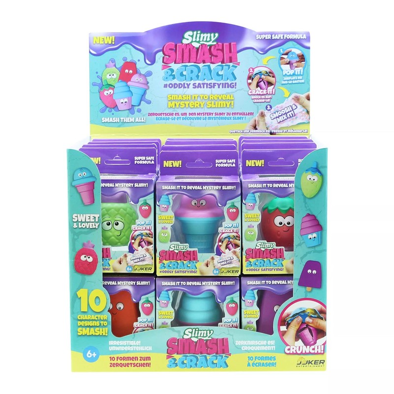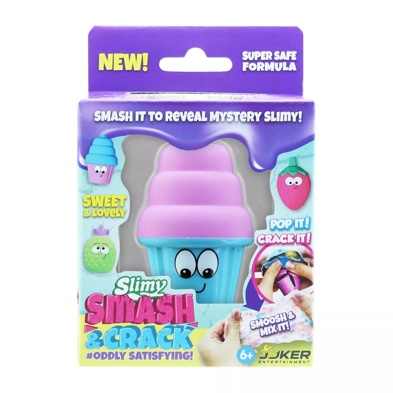 Atrask keistai raminančias ir atpalaiduojančias gleives „Slimy Smash & Crack“! Suspausk, sutraiškyk ir atrask, kokios gleivės slepiasi gražaus indelio viduje! Šios gleivės turi traškančių priedų, tad minkomos skleidžia garsus! Tai malonumas, kuriam neįmanoma atsispirti! Rinkinyje yra sandari pakuotė gleivėms laikyti. Asortimente – 5 skirtingi rinkiniai (kiekvieno iš jų galimos dvi spalvos) – ledinukas, ananasas, ledai, braškė ir keksiukas. Surink visą kolekciją!