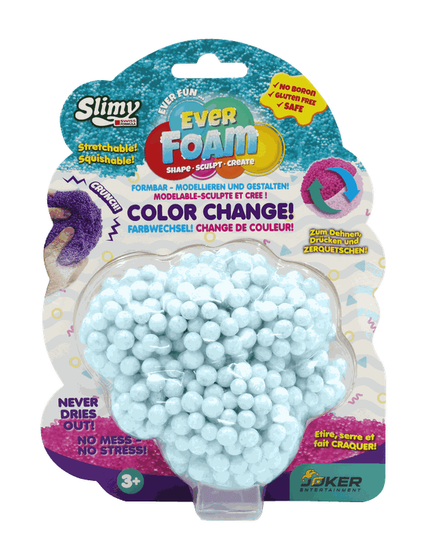 Pasinerk į sensoriką lavinančią veiklą su spalvą keičiančiomis putomis „Ever-Foam“! Šios neišdžiūvančios tamprios putos – tai tarp tavo pirštų atgyjanti spalvų magija! Tamprios, hidrofobinės ir puikiai tinkančios smagiems žaidimams be jokios netvarkos. Asortimente yra ryškiai rožinės ir mėlynos putos, kurios keičia spalvą nuo 26°C iki 31°C temperatūroje. Putos lengvos, jų sudėtyje nėra gliuteno, jos netgi plūduriuoja vandens paviršiuje! Atrask neribotų žaidimų galimybes!