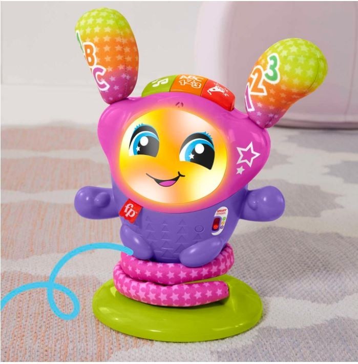 Suraskite mokymosi ir šokio ritmą su muzikiniu edukaciniu žaislu iš Fisher-Price! Paspaudus mygtukus, interaktyvus šokantis žvaigždė atgyja su spalvingomis šviesomis ir daugiau nei 75 garso aktyvacijomis, kurios supažindina mažylius su raidėmis, skaičiavimu, spalvomis ir kt. Šis muzikos žaislas turi ypatingą minkštą pavasarį, DJ linksmai šokinėjančią, kviečiantį aktyviai žaisti! Su 3 mokymosi lygiais, ši šokanti žvaigždė skatina mažylius šokti, žaisti ir smagiai mokytis.
