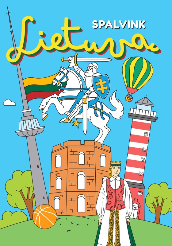 „Spalvink Lietuvą“ – tai edukacinė spalvinimo knygelė vaikams, kviečianti pažinti Lietuvą per spalvinimą! Čia rasite vienus iš žymiausių Lietuvos objektų, simbolių ir kultūros elementų – nuo Gedimino ir Trakų pilių iki šaltibarščių, oro balionų ar žemaitukų.