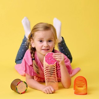 Šis spyruoklinis žaislas nuo seno yra labai mėgstamas tiek vaikų tiek suaugusių! Spyruoklė lengvai nusileidžia laiptais arba gali būti smagus miklumo iššūkis. Spyruoklė yra dviejų spalvų ir užsegtais galais. Galuose pavaizduota smagi spurga.