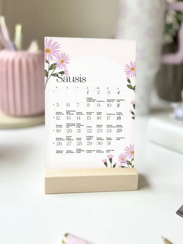 Stilingas dizainas. Kalendorius sukurtas su elegantiškais gėlių motyvais, kurie puikiai dera prie bet kokio interjero.