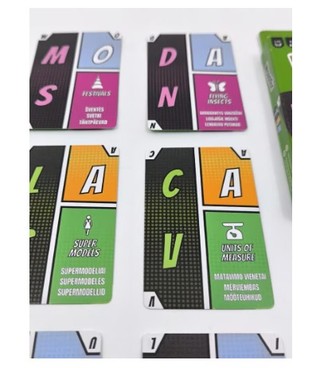 Sudėtingesnėje pusėje (žalia/geltona): JAV valstijos, Sostinės, Kokteiliai, Metalai, Tapytojai, Miuziklai, Mitologinės būtybės, Žmogaus kaulai, Stalo žaidimai.