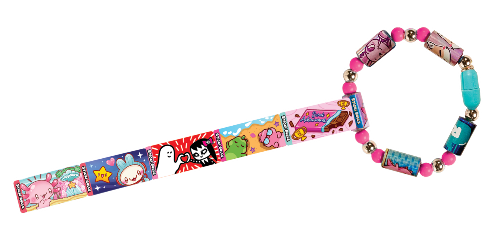 STICKI ROLLS – tai stilingos apyrankės su lipdukais, kuriuos gali klijuoti, kur tik panorėjęs! Lipdukų ritinėliui pasibaigus, jį gali lengvai pakeisti nauju – išskirtinė tvirtinimo sistema leidžia tai lengvai padaryti neperdarant visos apyrankės!