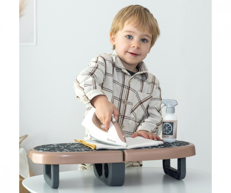 Šis sulankstomas, kompaktiškas ir sumanus lyginimo stalas leidžia mažiesiems imituoti mamą ir tėtį, kai jie lygina. Viskas yra po ranka: stalas, realistinis Tefal lygintuvas su paspaudžiamu mygtuku ir purkštuvas. Lengvai laikomas, jis idealiai tinka mažoms erdvėms. Su savo moderniu dizainu, jis sujungia funkcionalumą ir eleganciją.