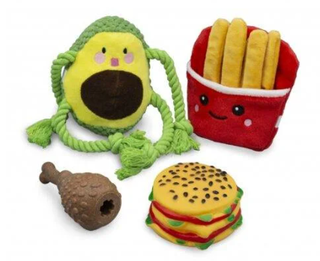 „Skanusis“ šunų žaislų rinkinys – tai žaismingas ir mielas rinkinys, sukurtas šunims, kurie dievina žaisti ir kramtyti. Šiame komplekte esantys žaislai primena skanumynus (bulvytes fri, burgerius, avokadus), todėl jie atrodo smagiai ir traukia augintinio dėmesį.