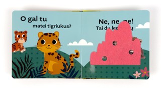 Kur pasislėpė tigriukai? Ieškok, kas dar slepiasi po medžiagėlėmis.