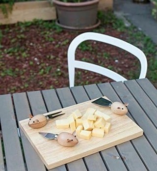 „Kikkerland“ siūlo sūrio peilių rinkinį su nuostabia pelės formos rankena. Jų pagalba galima lengvai pjaustyti sūrius. Puiki ir smagi dovana sūrio mėgėjams.